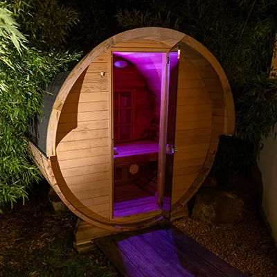 La Suite Baobab offre un espace complet dédié au bien-être : jacuzzi privatif, sauna, piscine intérieure au ciel étoilé, jeux de lumière chaleureux, terrasse vitrée, coin jardin verdoyant et l’intimité d’une propriété totalement privée.
